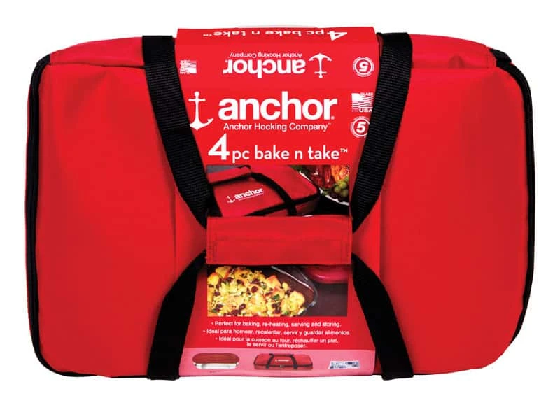 Anchor Hocking 10-1/2 In. W X 16-3/16 In. L Insulated Bake Ware Set Clear/Red 4 Pc