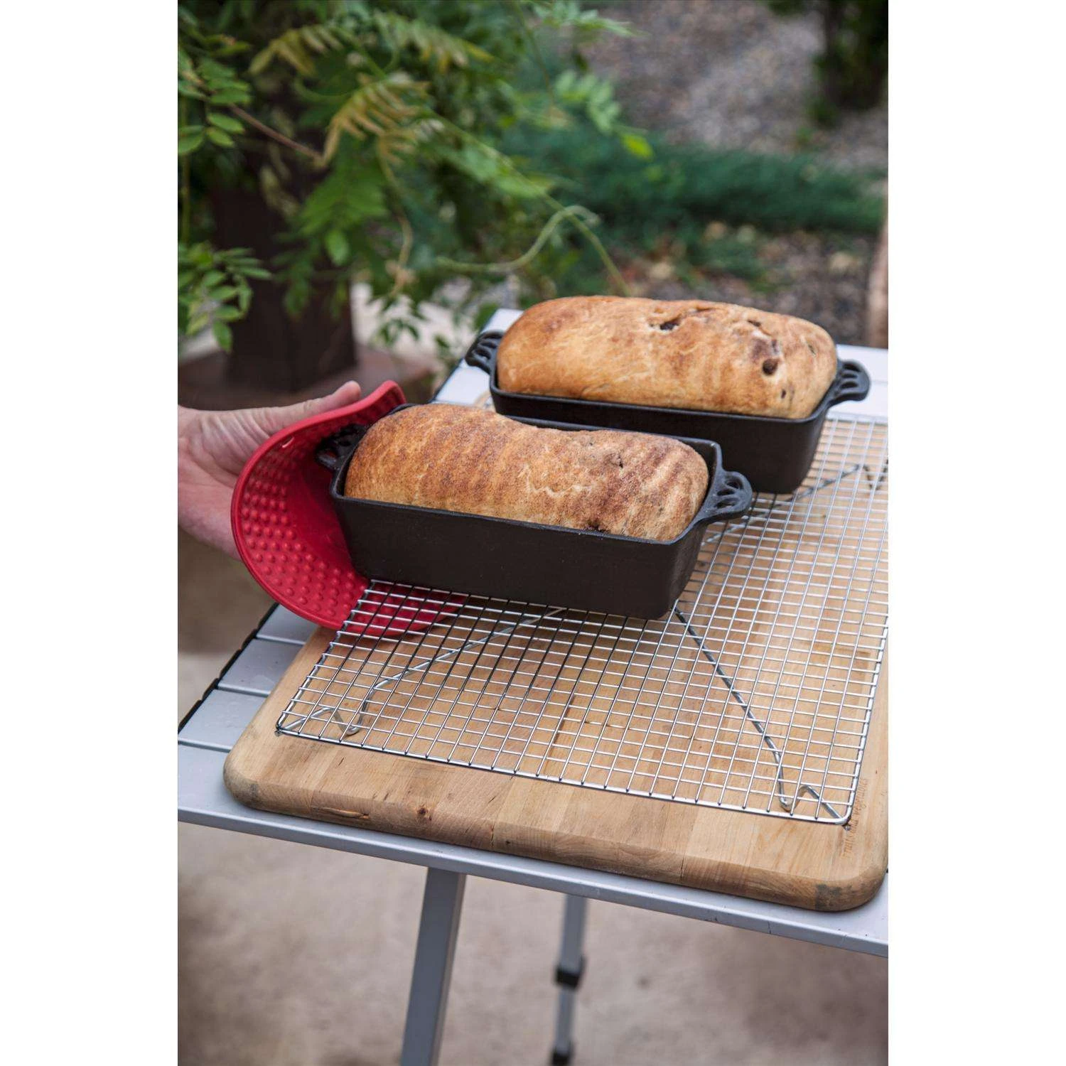 Cast Iron Bread Pan Bake bread in this pan and your family will beg for more. The Cast Iron Bread Pan offers even heat distribution giving your bread a golden brown crust. Decorative handles are added for convenience. This cast iron piece comes pre-seasoned with Camp Chefs True Seasoned Finish giving it a natural cooking surface that is ready to use out of the box. True Seasoned Finished cast iron Decorative molded cast iron handles Bake perfect shaped loaves of gourmet breads in a pan that will last a lifetime
