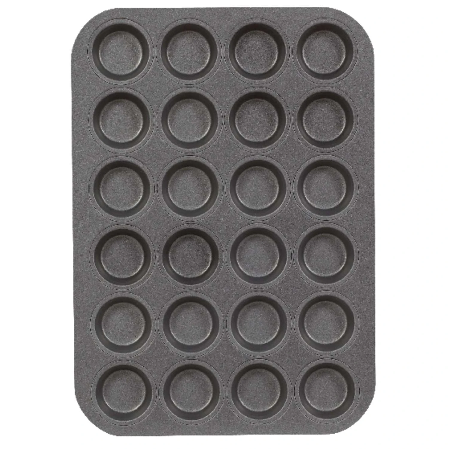 This Chicago Metallic Mini Muffin Pan is made from 24 mini wells, ideal for bite-sized cupcakes, cheesecakes and other treats Diamond-quality, nonstick dual coating Heavy-weight aluminized steel Strong and durable, long-lasting construction Use with or without paper baking cups