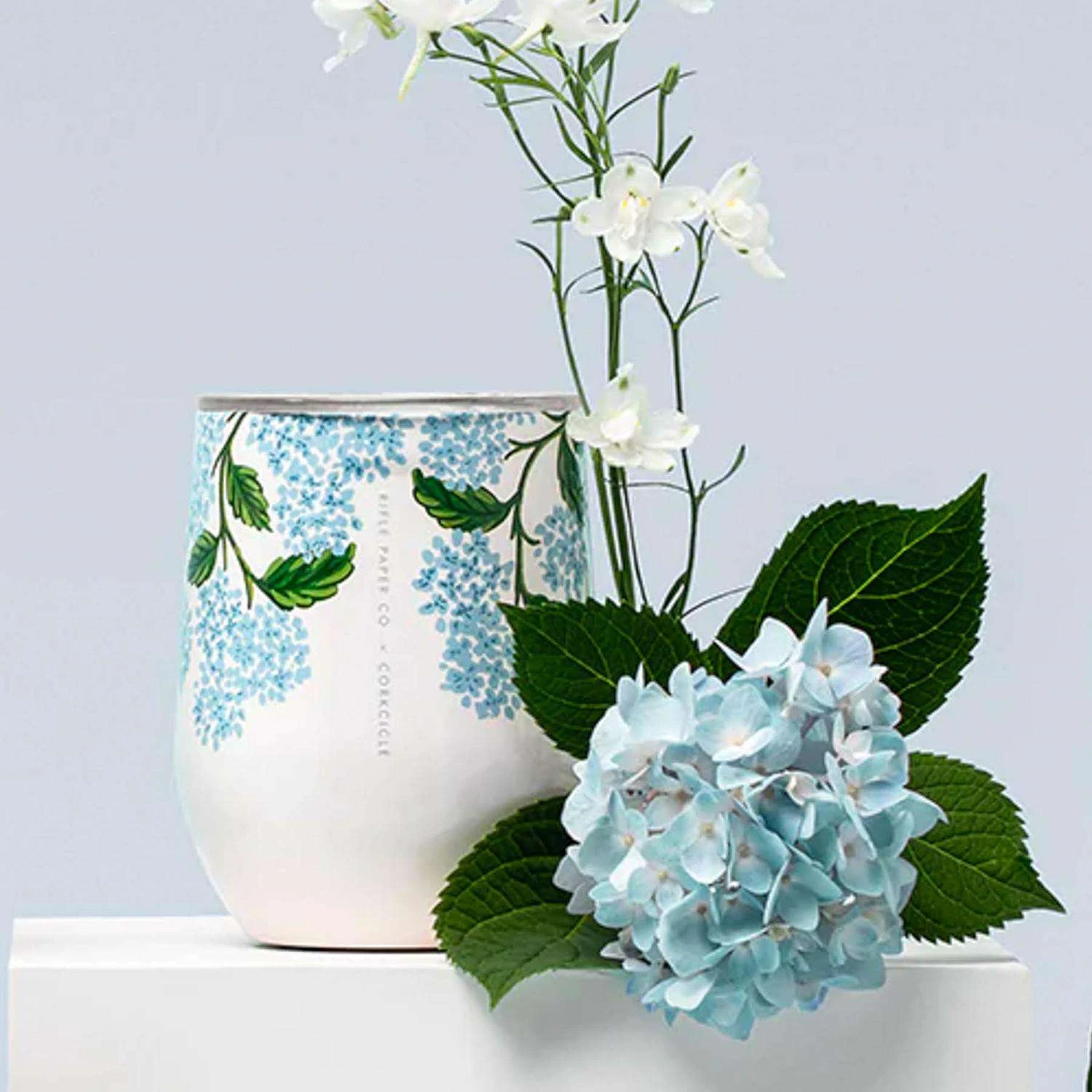 Corkcicle Stemless 12 Oz Rifle Paper Cream Hydrangea BPA Free Wine Tumbler