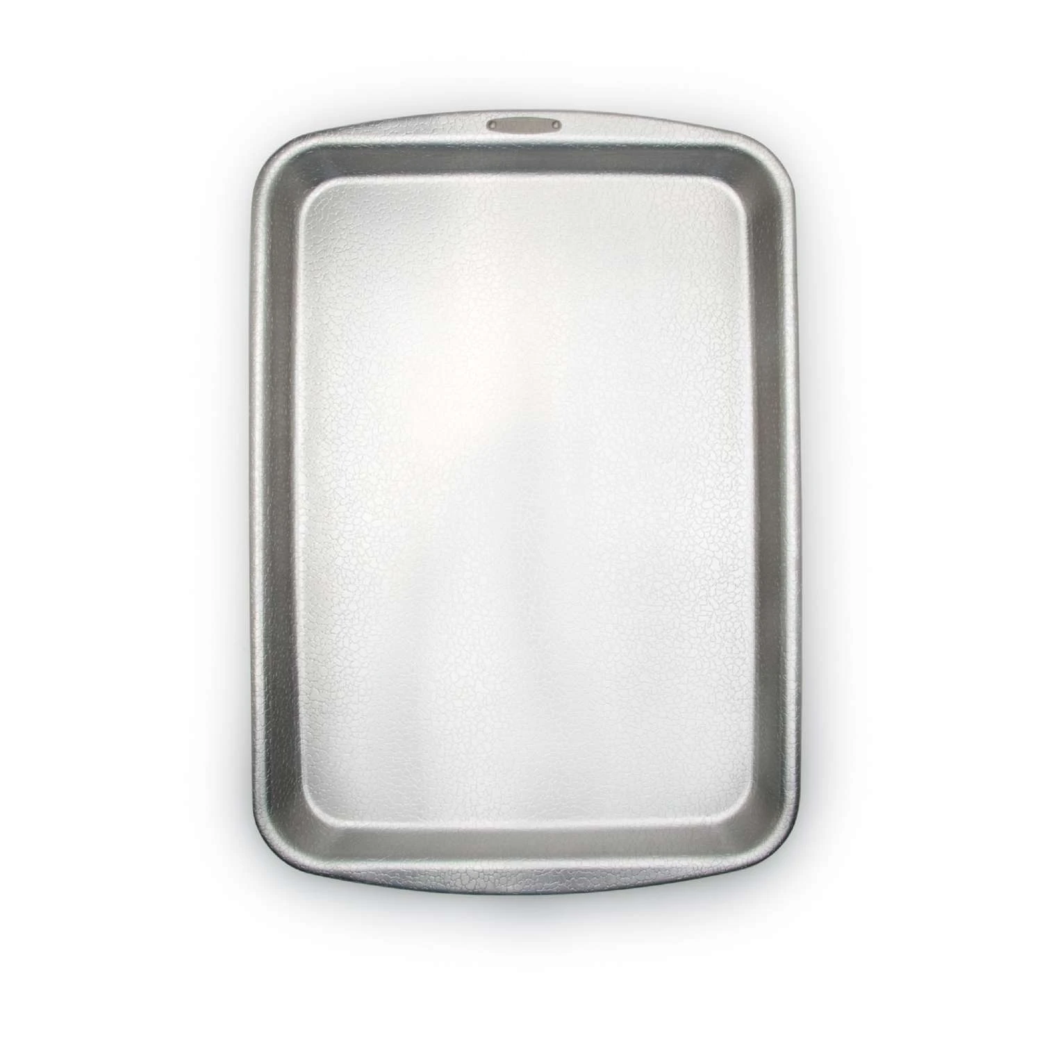Want to bake like a professional in the comfort of your own home? Our Sheet Cake Pan is great for making sheet cakes for large parties, baking cookies, roasting vegetables, and more. Made of premium heavy gauge, recyclable aluminum with strengthened handle areas, the pan features our original pebble pattern, which allows for airflow under baked goods for more even browning and quick release! This non-coated bakeware’s unique, natural non-stick properties means consistent, reliable and healthy results every time. The embossed pattern is also useful when greasing and flouring: it will help hold a bit of shortening that might otherwise be wiped off. To keep bakeware looking its best, hand wash promptly in hot soapy water and dry before storing (Avoid detergents with a chlorine base). Put an end to baking with problematic coatings. Experience the bakeware that home bakers love and professionals praise! COMMERCIAL GRADE 18 GAUGE ALUMINUM the choice of professional bakers, Overall dimensions: 20.75 x 14.5 x 1.5 inch, Interior dimensions: 13 x 18.5 inch PATENTED PEBBLE PATTERN designed in Terre Haute, Indiana, allows airflow under baked goods for more even browning and quick release HEALTHY BAKING, Doughmakers natural non-stick properties due to pebble pattern surface, eliminates the need for shortenings and other oils or sprays MORE DURABLE AND RUST RESISTANT than non-stick and aluminized steel, scratching doesn’t effect performance of the bake pan To keep bakeware looking its best, hand wash promptly in hot soapy water