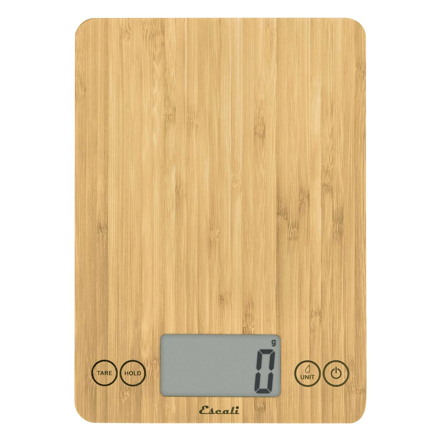 The Escali Arti Digital Scale is capable of weighing both liquid and dry ingredients up to an astounding 15 pounds with 0.1 ounces or 1 gram increment. It features an easy to read oversized display that sits between the user-friendly touch-sensitive controls which are integrated into the natural bamboo weighing surface. The platform of the scale is made from all natural, sustainable and environmentally friendly bamboo The touch sensitive controls result in a smooth weighing surface which is easy to keep clean The scale is capable of measuring both liquid (fl oz, ml) and dry ingredients (g, oz, lb + oz) Hold weight measurements on screen when weighing large items, even after they are removed from the scale Reset the scale to zero weight to measure multiple items or subtract the weight of a container The scale will turn off after three minutes of inactivity to help conserve and extend battery life