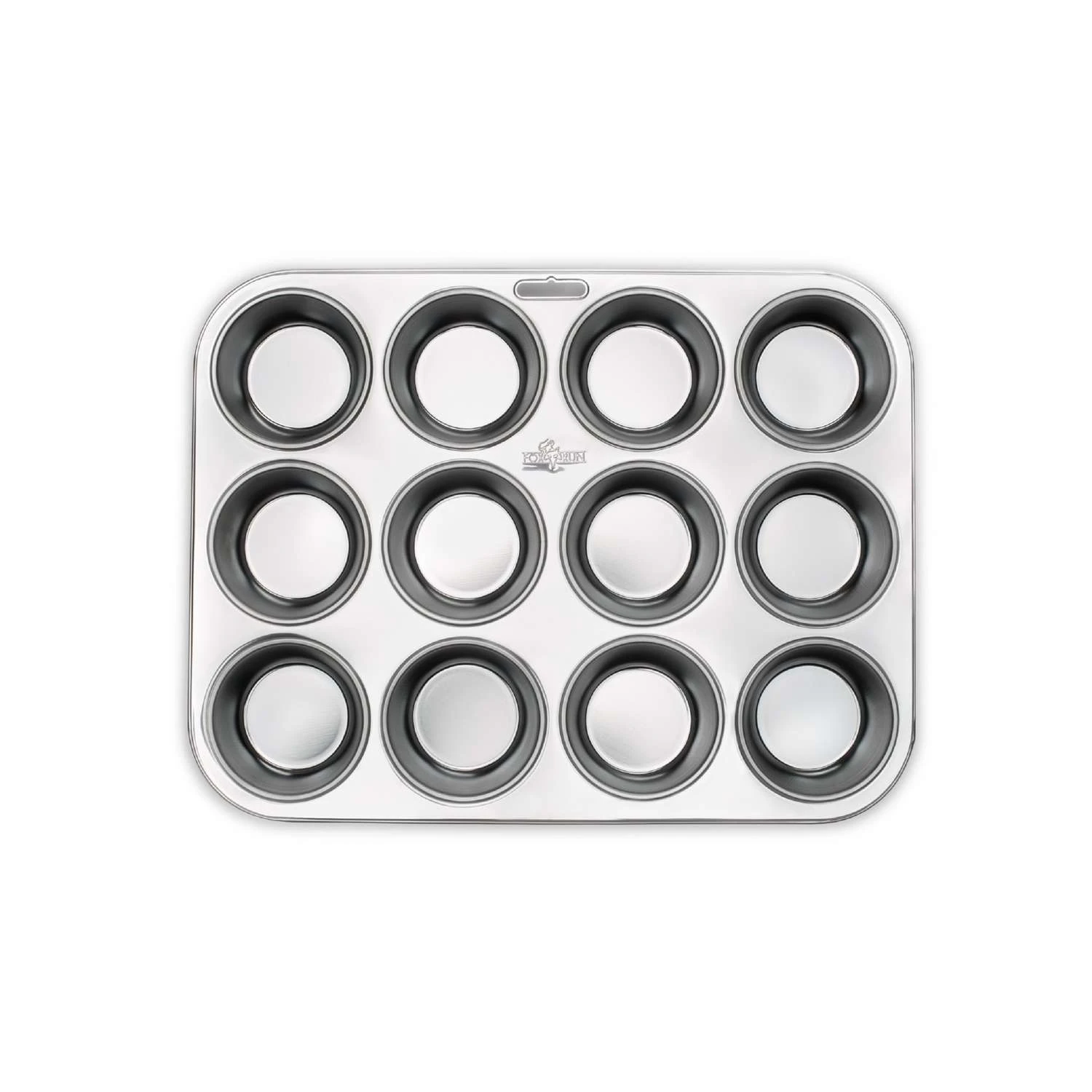 Bake mouthwatering muffins with this Muffin Pan! Our beautifully crafted stainless steel bakeware features a stain, scratch, and rust resistant surface that will not warp or corrode, but will preserve its elegant shine over time. Having the ability to withstand extreme temperatures and heavy scrubbing, this non-reactive and nonporous pan will provide for years of safe and successful baking. The pan features 12 molds, perfect for muffins or cupcakes, that will evenly brown due to the pan’s uniform heat transferring ability. Works great with or without cupcake liners! Enjoy a warm, soft and perfectly-domed muffin in the morning to get your day started on a good note. Non-reactive and nonporous, has the ability to withstand extreme temperatures and heavy scrubbing Made of lightweight but durable, sleek stainless steel Features 12 molds, perfect for muffins or cupcakes Features a stain, scratch, and rust resistant surface that will not warp or corrode