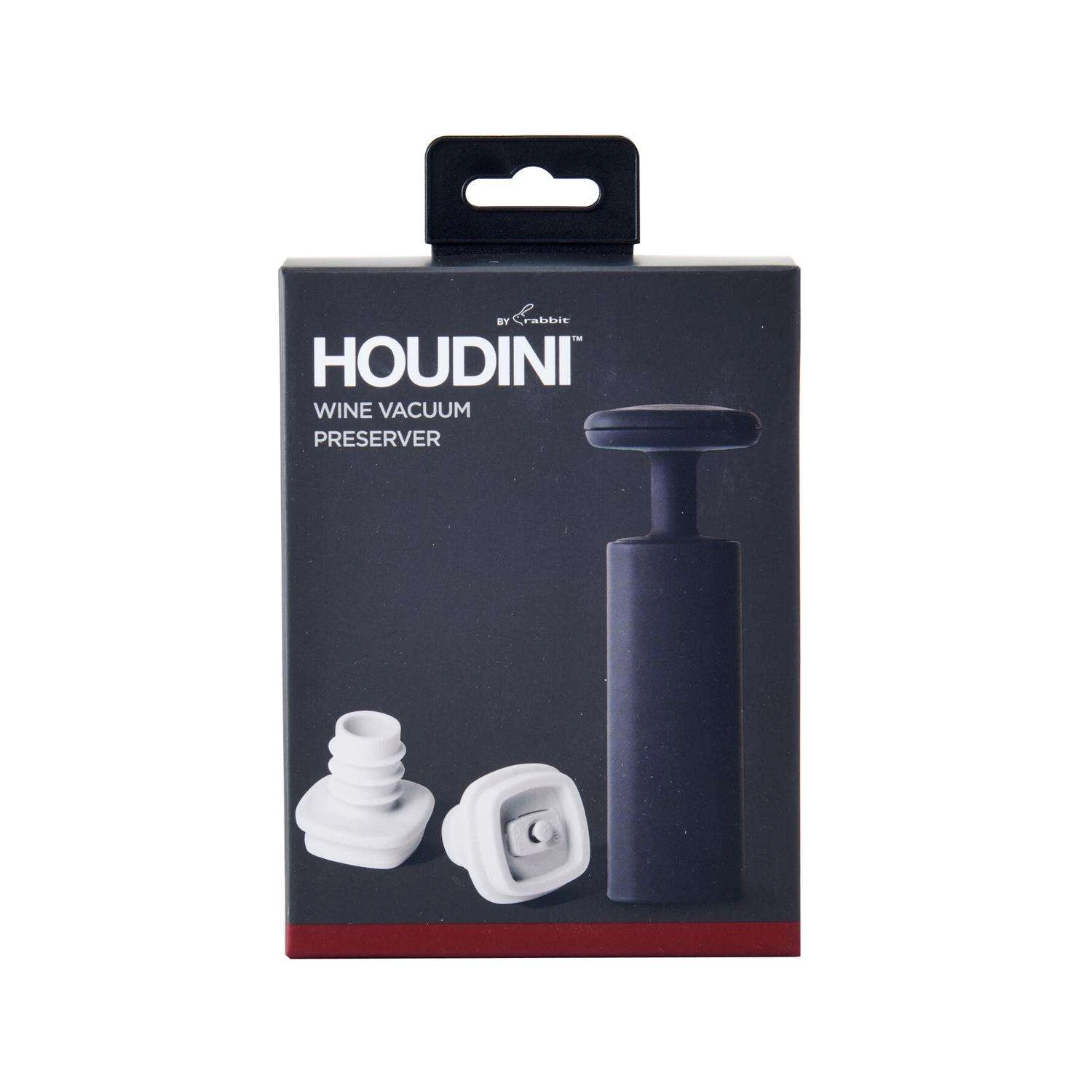 The Houdini Wine Preserver is a pump-and-stopper vacuum system that removes air from an opened bottle of wine. This preserves the wine’s taste until the bottle is reopened. It has also been designed with ergonomics in mind. Patented “push button” stopper holds vacuum for days Ergonomically designed pump handle for easy operation Antimicrobial pocket sleeve and lanyard NSF listed