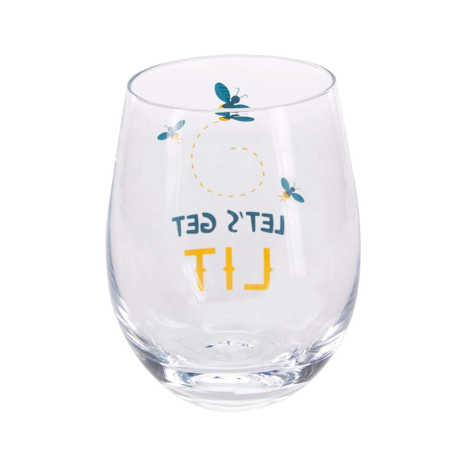 Calling all campers! Pavilion’s 18oz stemless wine glasses feature fun words and images relating to the camping. Premium quality 18oz stemless wine glass, packaged in a printed open-faced box, is made from high-quality glass Let’s get lit text and fireflies image are heat-printed onto the front of the glass To best preserve decals, wash by hand only using mild detergent Do not leave soaking in water