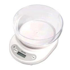 White, silver and glass is a classic color combination and this Glass Platform Kitchen Scale achieves this classic look. Weigh directly on the glass platform, which will not stain or carryover flavors or with any bowl or container. A big and bold 1.0 readout features. The add and weigh βtareβ function allows the weight of the container to “zeroed out” before adding food. Blue backlit display Auto shut off and tare features Raised glass platform