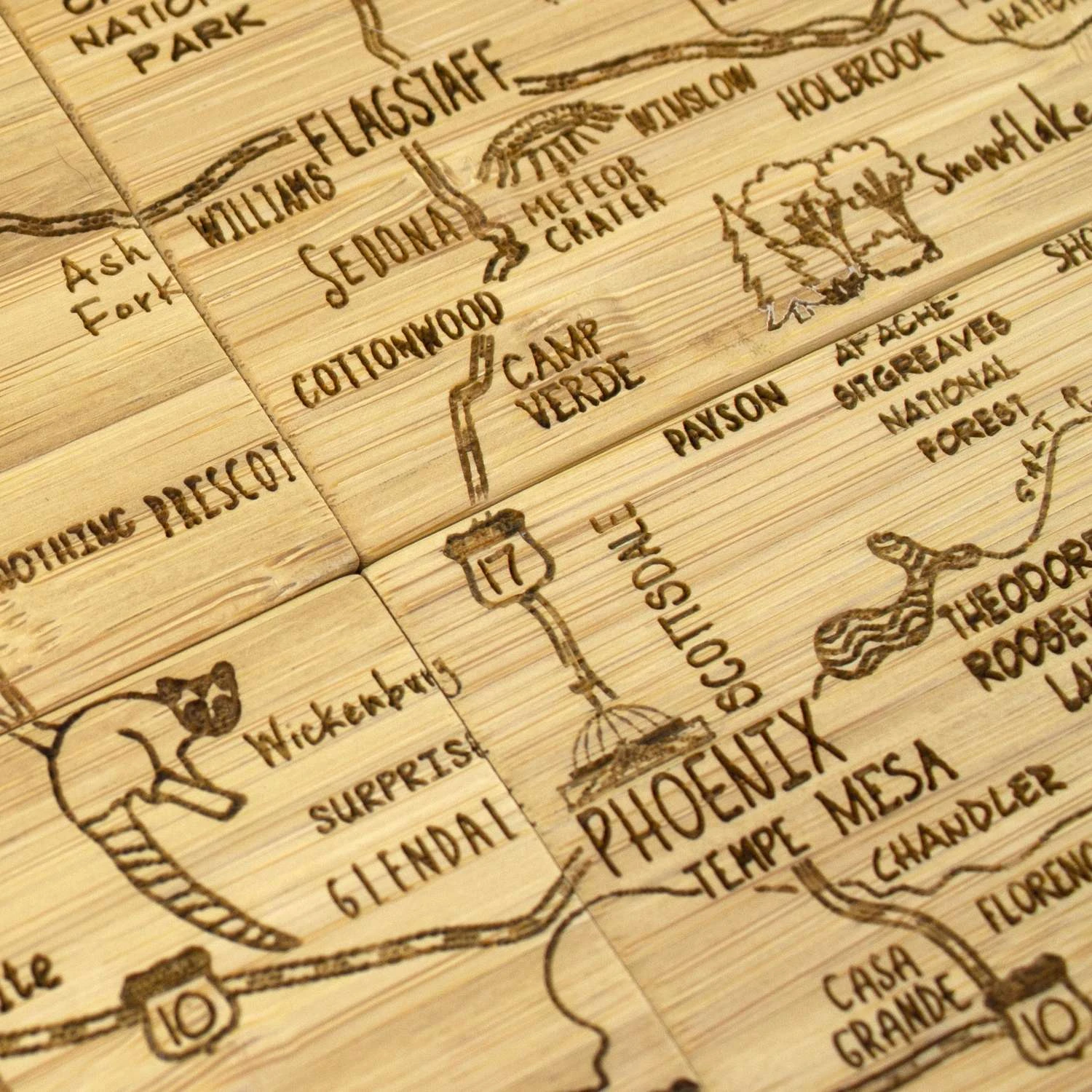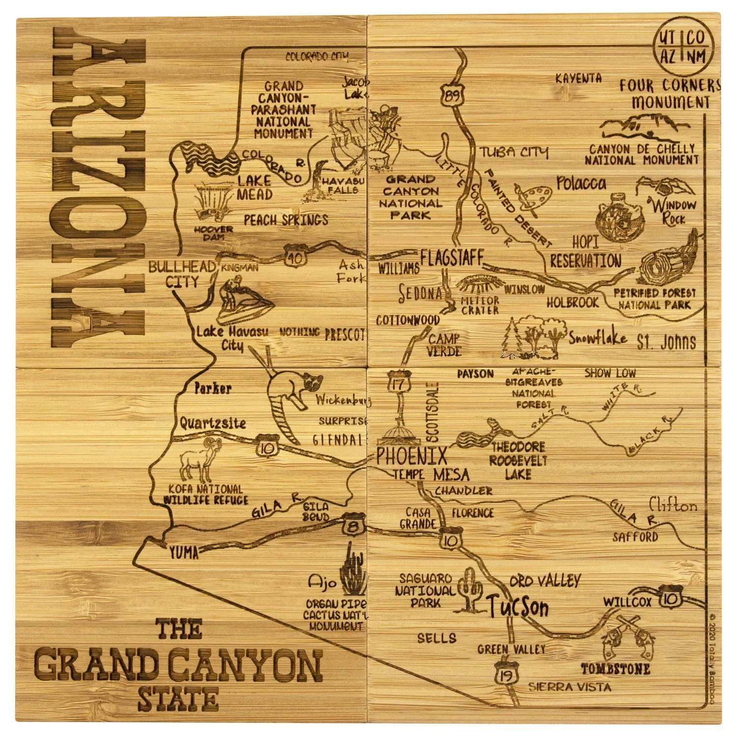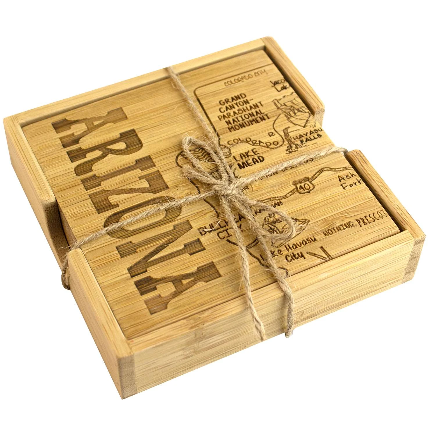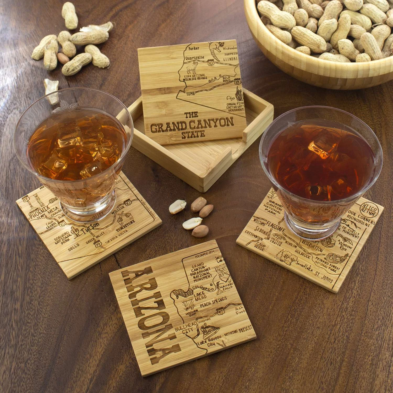 The Totally Bamboo State Puzzle Coaster Set with Case offers a natural solution for protecting tabletops while showcasing your home state. These sturdy coasters are crafted from organically-grown Moso bamboo, an environmentally-friendly material solution that quickly regrows once harvested. Bamboo is both lightweight and durable – a perfect choice for coasters! The coaster set includes a handsome case to store coasters neatly when not in use. A puzzling way to protect tables add a bit of local fun while protecting your tables with these state puzzle coasters The coasters are easy to care for as well: simply wipe them with a damp cloth to clean Each coaster measures 4 inches by 4 inches to accommodate all popular sizes of glasses and mugs