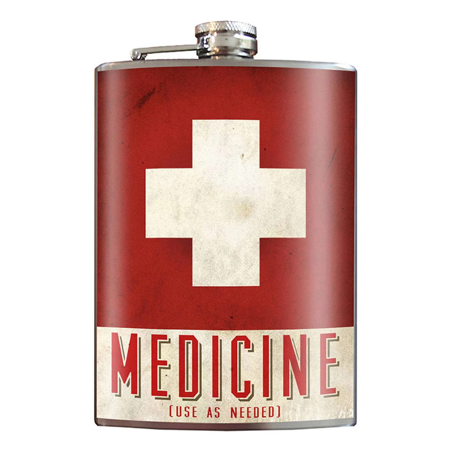 Everyone needs to take their Medicine -why not keep yours in this handy flask? Cheers to style! Original art on a stainless steel hip flask; created by the artists Trixie & Milo – how cool is that? Every flask is made from 100 percent lead free, food-grade stainless steel. Each design is printed on high-quality vinyl that is both water and alcohol proof. These flasks make an awesome gift for weddings, birthdays, holidays, specialoccasions and more. Image label is protected by a layer of high gloss liquid enamel laminate and baked on at 200 degrees, this means it will last a long time Ships in a handy gift box perfect for wrapping and read to gift To clean wash in soapy water, rinse clean and wipe down with a soft cloth to dry