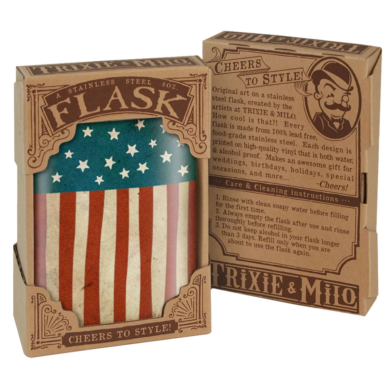 Trixie & Milo Old Glory 8 Oz Multicolored Stainless Steel Flask